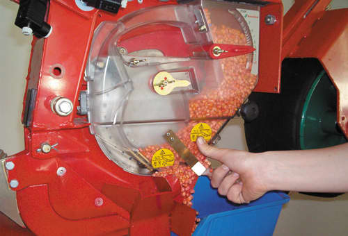 - Vlastnosti stroje e-drive/e-drive II doplňuje elektronické sledování všech funkcí stroje včetně monitorování semen optickým snímačem.