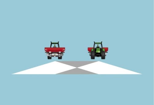 - Přesný obrazec rozmetání: Obrazec rozmetání s dvojím překrytím poskytuje nepřekonatelnou přesnost. 8 lopatek na každém kotouči zajišťuje plynulý tok hnojiva na pole. To je důležité pro vysoce výkonné rozmetání a pojezdovou rychlost.