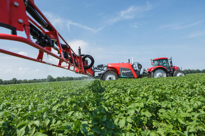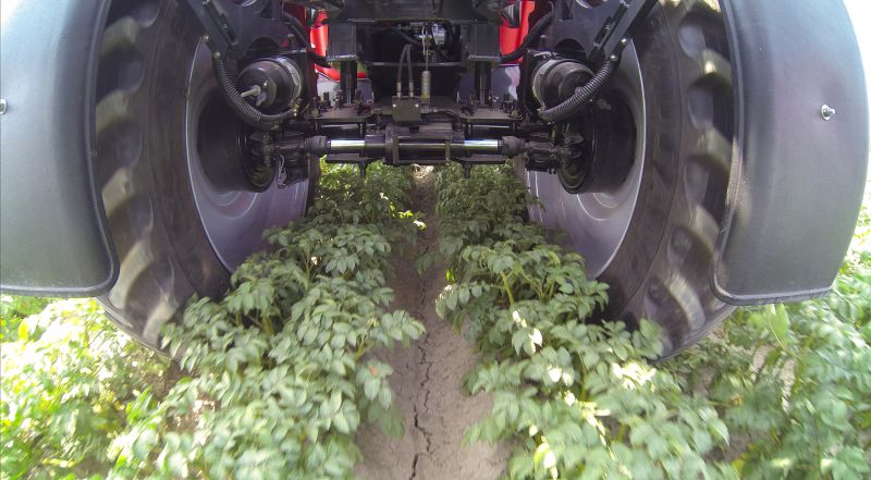 - Přesná aplikace: Správný tlak v každé trysce ve správný čas a na správném místě. To vše v kombinaci se správnou výškou trysek nad cílem a správným vedením stroje v kolejových řádcích díky automaticky řiditelné nápravě