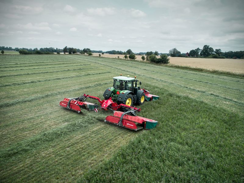 Žací kombinace Kverneland 53100 MT/MR BX Vario se shazovacími dopravníky je navržena pro agregaci s traktory vyšší třídy.